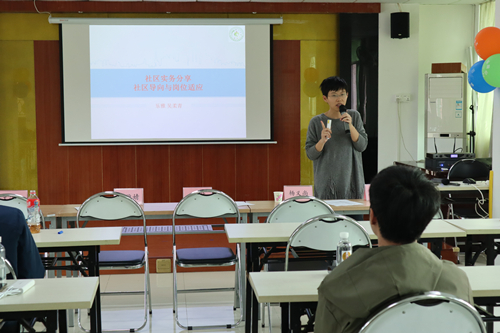 下午,机构为新同工组织了两场培训,第一场是《社区实务经验分享》培训,由见习督导吴柔青讲述如何撰写活动文书、小组文书、个案文书等。