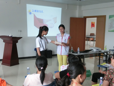 2015年7月17日,石碣居家养老团队邀请市红十字会讲师在刘屋市民学校开展了一场急救知识培训。针对夏季多发意外及家庭突发情况,为81名护工进行培训,以应对服务过程中老人突发状况,同时也增强自身的安全意识,提高急救应对能力。