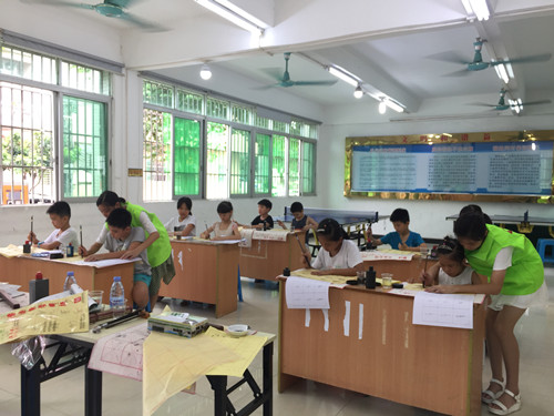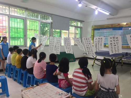 为丰富青少年的暑期生活, 2018年7月23日-27日早上9:30—11:30,在麻四村图书馆一楼,乐雅驻麻四村社工开展了一期“书墨浓情”毛笔书法兴趣小组,教授书法的基本知识和技巧,培养学生的书法兴趣,发展书法特长,促进了解毛笔的基本知识。