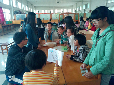 11月15日下午3点,在麻二社区的支持下,乐雅驻麻二社工联合中山大学新华学院财会系阳光志愿队的大学生志愿者开展了“阳光伙伴,周末学堂”的第七节,主要为麻二社区的学生提供课业辅导和“你比我猜”主题活动。