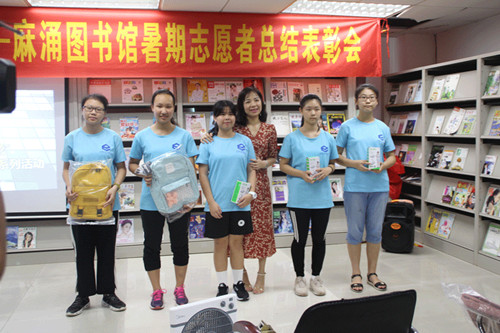 麻涌图书馆每年暑期招募读书夏令营志愿者,为读者特别是青少年儿童读者提供成长、学习及培养良好习惯的平台,同时也丰富他们暑假文化生活,促进麻涌图书馆暑期志愿服务质量的提升,拓展图书馆社会服务职能,扩大图书馆的社会影响力。乐雅驻麻涌岗位社工在麻涌镇图书馆的支持下,联合打造“读书夏令营”2019麻涌图书馆暑期志愿者系列活动,2019年8月29日下午正式结束,麻涌镇图书馆41名志愿者获得表彰。