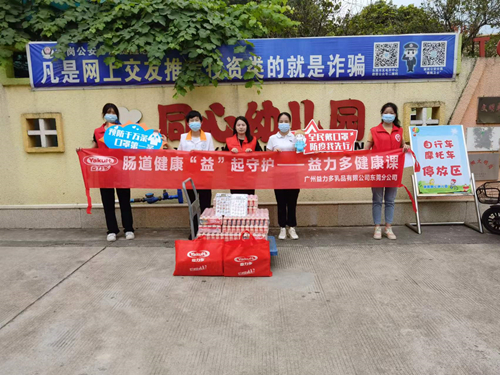 活动得到了同心幼儿园大力支持,余秋萍园长认为:这类服务很有意义。同时,获得了广州益力多乳品有限公司(东莞分公司)的爱心赞助,整合资源约3000元。戴口罩,不只是为了自己,全民抗疫,健康生活,我们一起努力。(文/ 吴柔青)