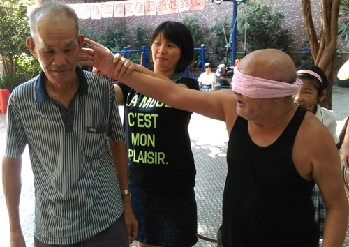学生们的到来让老人都燃起了兴致,早早地搬好凳子坐下来,喜滋滋地等待表演开始,义演开始前,苏院长向所有前来的学生、家长和工作人员表达了诚挚的谢意,随后,孩子们和老人都投入到表演当中。随着歌曲《虫儿飞》、葫芦丝演奏《金孔雀轻轻跳》和《军港之夜》、群舞《快乐的歌》和《彩虹的约定》、功夫扇表演、拉丁舞《小苹果》、大合唱《同一首歌》等一段段节目的精彩上演,敬老院的气氛也活跃起来,老人们纷纷热情喝彩。在表演中途我们还加入了投乒乓球的游戏和蒙眼摸五官辨人的互动环节,老人们积极参与,玩得不亦乐乎。一位将近百岁的老婆婆将5个乒乓球悉数投进桶中,是当天老人玩投球游戏的最好成绩,在场人员无不拍手叫好,赞叹婆婆年近期颐而宝刀未老,婆婆咧开嘴笑得十分开心。最后,孩子们亲手给老人送上自己参与制作的丝网花,沐浴在秋日暖阳下的敬老院愈发温情满满。