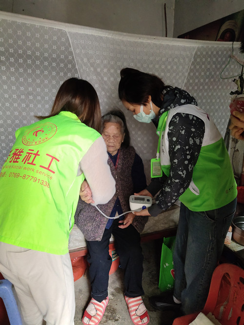 本次活动共入户探访6位老人,志愿者们为老人准备了米、油等慰问品,还为老人准备了口罩等防疫物品。入户后,社工先为每一位老人进行常规的血压测量,细心地询问老人的身体近况,并为老人测量体温,老人均未出现发热状况。社工叮嘱老人外出时要配戴口罩,回家后要洗手,并为老人示范如何正确配戴口罩。李婆婆收到50个口罩十分开心,她表示春节管理区送的口罩都已经用完了,自己又买不到口罩,只能每次外出回来就用纸巾擦一擦,再用纸巾把口罩包着折起来放在口袋,下次继续使用。社工跟老人解释口罩需要放到通风的地方,而且重复使用时间不宜过长。