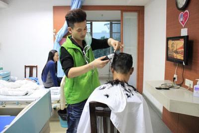 11月7日,乐雅驻东莞市第三人民医院医务社工联合东莞市石龙志愿者协会在东莞市第三人民医院住院部举行了“爱心义剪,情满医院”的义剪活动。本次活动邀请了6名理发师志愿者,为肾内科、烧伤科、康复科20余位病友提供了免费的理发服务。