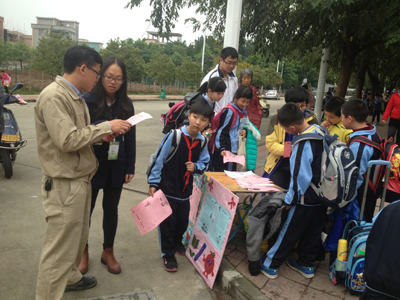 为使周末学堂的在社区中发扬,2015年3月12日下午放学时段,乐雅驻麻涌社工在麻涌镇中心小学门口举行了周末学堂招募活动。活动主要以派发宣传单以及现场问答等形式进行。各村的家长和学生都积极踊跃,纷纷拿过宣传单咨询社工们如何报名,什么时候开展等,社工也给予了详细的解说。