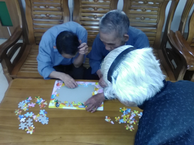 老人们在小组中学习画画涂色、拼图训练,这些内容不仅丰富了长者的院舍生活,加强长者间的沟通交流,同时也提高了长者的动手能力,有助于维系他们的身体机能。看着完成好的作品,老人都感叹:真没想到如此年长的自己,还能做这些事情,真是要感谢现在的政府,给老人提供这么好的条件。(乐雅社工——江中娟)