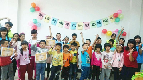 活动当天在社工简单介绍活动内容和意义后,通过破冰游戏——传篮球,在场的孩子们都慢慢地投入到热闹而开心的气氛当中,经过第一、二轮传球,主持人要求接到球的孩子在现场表演唱歌或者跳舞等才艺展示,其中,有些不怯场的孩子直接跳起《小苹果》,有些比较羞涩的孩子就坐着跟全场的孩子哼起歌来,有些就大胆地嚷着嗓子唱起来,不时还用脚丫打起拍子,小小的学堂瞬间都飘扬着孩子们天籁般的童真的歌声。