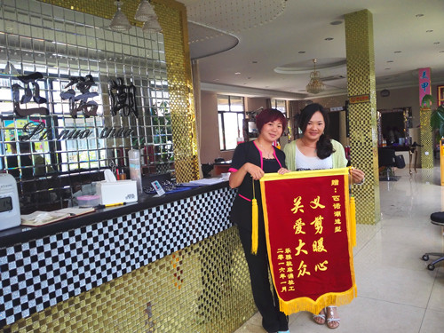 【麻涌】理发店爱心义剪 社工送锦旗致谢