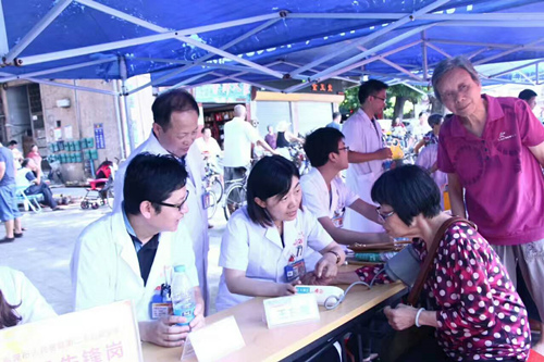活动开始后,前来参与的社区居民蜂拥而至。在通过社工人员的引导下,居民们相继寻求医生咨询疾病预防问题,医生们十分认真、投入,尽心尽责的为居民们一一解答疾病问题。另外由医护人员的合理安排下,社区居民们有序的排队测量血压和血糖,并为居民们提出合理有效的医药建议。在活动过程中,中心社工设置了健康医疗知识问答游戏摊位,前来参加的居民们针对医疗知识问题进行了讨论,现场气氛热烈融洽。医生在旁边为居民们解释每一题的医疗知识问题,让居民们更加深刻的了解到健康医疗知识,并且鼓励大家要树立积极乐观的生活态度,养成健康的生活习惯。