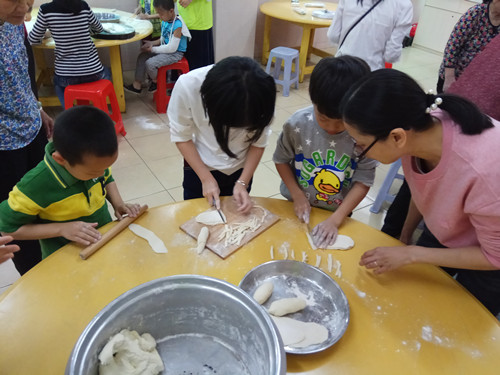 活动一开始,小朋友们就欲欲跃试,迫不及待地想知道刀麻切到底是怎么做成的。随着社工的讲解,社区妇女志愿者的示范和教学,家长们和小孩一起默契的配合,体验亲手制作刀麻切的过程,并从中感受快乐的亲子时光。在大家的认真与努力下,社区妇女志愿者把大家做的刀麻切与香菇、虾米、排骨及蒜蓉豆豉一起煮出了美味的刀麻切,大家纷纷拿起手机拍照留存,然后一起品尝,分享感受。