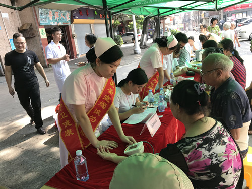 此次活动为社区居民提供医疗咨询、测量血压、测量血糖、中医把脉及口腔问题检查服务,前来参与的居民络绎不绝,医生们认真的诊断、耐心的讲解让社区居民在家门口就能体验到了专业的医疗服务。