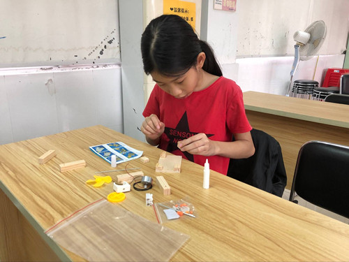 们通过组装手摇发电机灯加强了动手能力和思考能力。