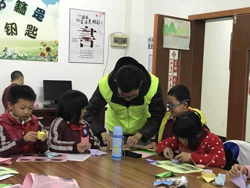 活动开始前,社工和四点半学堂儿童谈及了他们如今的学习状况,多数小朋友表示进入了新的学期后,学习难度大了好多,作业量也多了很多,需要做到很晚才能完成,所以每周最期盼的就是周五放学后的社区活动。说到这里,孩子们都迫不及待地希望本次活动的开始。本次活动中,社工为不同年临段的孩子准备了不同难度的折纸教程,有心形书签、立体纸花和减压小人。高年级的小朋友拿到教程后便三五成群地扎堆自行摸索,低年级的小朋友则跟着社工一步步地学习。过了不久,便有小朋友举起手工成果大喊“我完成了!”,独立完成手工的成就感让小朋友们不知疲倦地一个接一个进行下去。