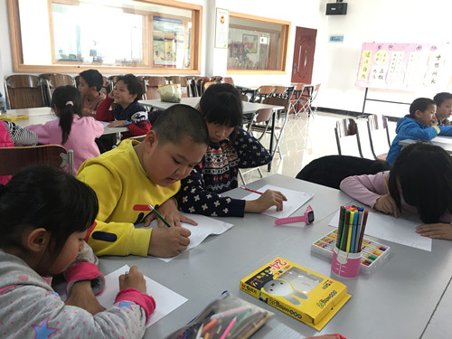 2019年1月22日,乐雅驻黎村社区综合服务中心的社工在青少年活动室开展“绘心计划”活动。