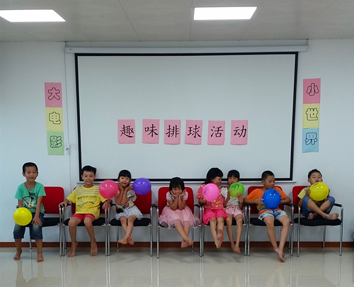 活动开始前为小朋友介绍排球的游戏的规则, 游戏活动开始了,按6人一组分队。游戏过程中,一组的队员把球打过线的一边,接球的组员都一起冲向气球,想把球接住,场面比较混乱。但经过社工的引导,他们找到了游戏技巧,分工开始明确,通过个人技巧与团队配合完成所有活动。游戏结束后 小朋友脸上都流露出开心的笑容。