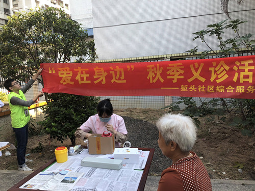 为进一步提高辖区居民的健康意识和自我保健意识,普及健康知识,传播健康理念。乐雅驻堑头社区综合服务中心社工联合毛秀才门诊的四名医务志愿者在黎屋围居民小组前开展“爱在身边”秋季义诊活动,为社区居民免费测量血压和血糖。本次活动共吸引了多名社区居民参与其中,旨在提高居民的健康意识,逐步改善社区居民的健康养护意识。