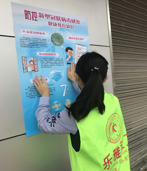 为提高人民群众对新型冠状病毒肺炎的防范意识。2月12日早上,乐雅驻四甲社区综合服务中心社工开展新型冠状病毒感染的肺炎疫情防控宣传工作,在四甲各店铺贴上防疫工作宣传海报,普及预防知识。