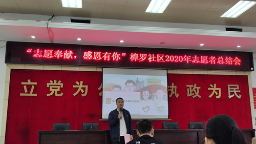 会议在樟罗社区团总支部刘书记的致辞下拉开序幕,樟罗社区团总支部刘书记在致辞中强调“志愿服务工作是一项长期而又艰巨的任务”,并鼓励志愿者们要坚定信心,勇往直前。随后,由社工为2020年志愿服务工作进行简单的总结汇报,与志友们回顾了今年的服务和改变。