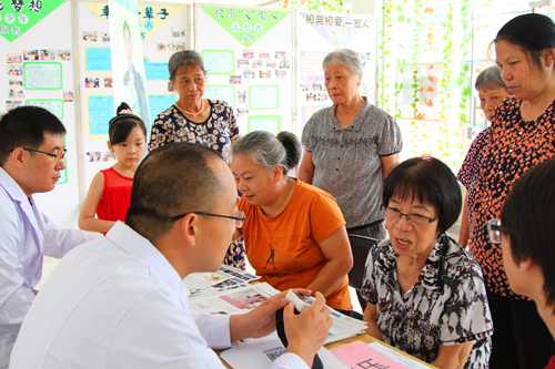 活动开始,由老师为社区居民简单讲解现时的三大类疾病,同时对于现在夏季的到来,为他们推荐夏季养生食谱。居民们通过老师的推荐和教导,认识到许多关于夏季消暑的健康代茶饮品的制作方法。活动过程中老师为他们演示了健身气功八段锦,同时邀请到居民代表周老师,为在座社区老人演示了一段,在座的居民们纷纷都站起来,学习气功拆解动作。讲座结束后,老师为社区居民测量血压,并且提出简单的建议,居民们纷纷向老师询问健康问题,活动于热烈讨论氛围中顺利结束。