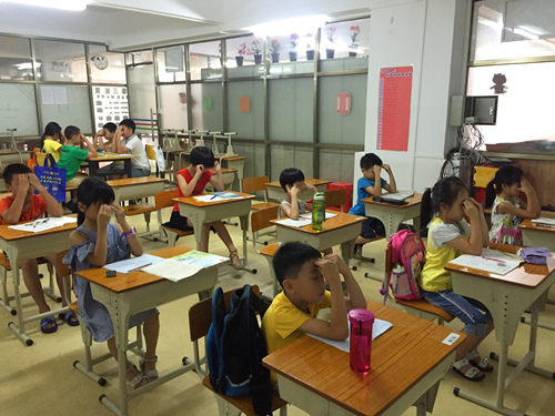 2017年7月10日,水南社区综合服务中心暑期成长营之作业辅导开启第一节啦!同学们来到之后自觉地做暑期作业,社工和志愿者也积极巡查成员们做作业的情况,提醒小成员的坐姿姿势要端正,握笔姿势要规范。成员们遇到不懂得问题,也积极地举手向社工和志愿者提问,社工和志愿者也耐心地为他们解答。做了40分钟作业后,社工让成员们放下手中的作业,一起来做眼保健操。