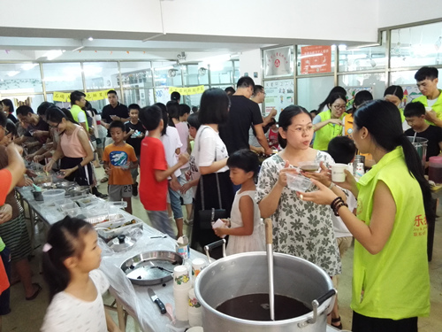 活动现场还对优秀学员、优秀主持人、最美家庭等进行了表彰,接着就进入了万众期待的美食自助餐环节。现场有乐雅驻水南社工亲自制作的美食,更有社区里热心公益的家庭准备的本地特色美食,如牛奶凉粉、凉拌鸡脚、陈醋鸡脚、酸梅汤、水果沙拉、凉拌青瓜、布丁、马蹄糕等应有尽有,还有公益商家石碣A-OK果色鲜果捞赞助的可口点心、石龙菲利斯披萨店赞助的曲奇饼、广东东鹏维他命饮料有限公司饮料赞助的陈皮饮品、东宝床垫赞助的矿泉水等,俨然是一场小型的美食节活动,而自助的方式更是让大家吃得自由、开心。