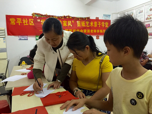 活动结束后,有的家长跟孩子们还不愿离去,仍与老师交流学习,老师表示前来社区的亲子对剪纸的热情超乎她的想象。亲子们一起识国学、学剪纸、促互动、增交流,有了一种别具一格的亲子体验。