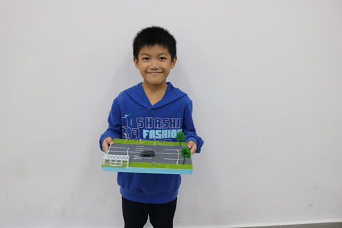 活动前期,社工助理介绍本次活动的主要内容。首先,社工助理将16个参与者分成8个小组进行制作。在社工的指引和协助下,社区儿童相互合作迅速地完成了平面绘图。随后,社区儿童按照自己的绘图剪出自己的材料,一步一步地完成自己的作品。虽然在制作过程中遇到难题,比如草坪纸比较难剪得好、马路斑马线难以贴好等,但是组员们都互相帮忙,并耐心请教学习,在活动结束时,每个小组都完成了属于自己的作品。
