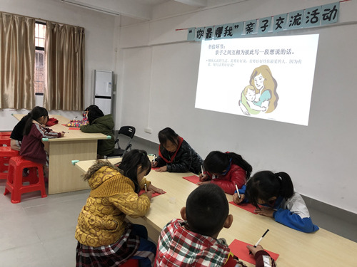 活动开始由社工致开场白,欢迎参加活动的家长和社区儿童们,并说明此次活动的目的与意义。然后开始播放一段叫“因为有爱,每句话要好好说”的亲子沟通视频,让家长和社区儿童通过观看视频得到日常生活的启发,为彼此写上一段心里话。在细水长流的生活里,需要好好说,需要好好对待最爱的人。因为有爱,每句话要好好说。随后还有一个环节“亲子拍照”,工作人员为每对亲子拍上合照后领取“手工涂鸦”一份,让亲子共同完成涂鸦手工,为“家的城堡”涂上美丽的色彩!