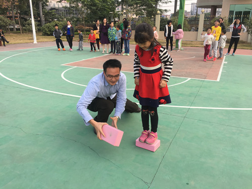 本次活动在通过不同形式的游戏,让家长和孩子们在活动中体会游戏乐趣的同时,促进亲子间的沟通,和谐关系的建立。活动内容主要包括麋鹿过河、运雪球、时光接力、揪尾巴和蒙眼踩气球等与圣诞节相关的有趣游戏。“来,使劲踩,加油!”,在踩气球游戏中一名爸爸一边卖力的踩气球,旁边的女儿卯足了劲帮爸爸加油。每轮游戏的时间虽然不长,但是大家却都已经玩的汗流浃背。