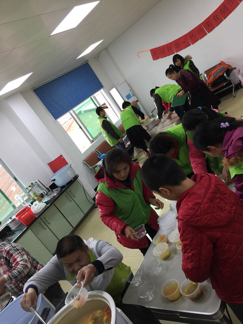 2018年2月24日早上8点多,你就可以在四甲社区综合服务中心的厨房看到一个个勤劳的义工在为这次活动做着准备,有的在洗菜、有的在切肉、有的在洗锅等。在肉菜食材的准备完成后,我们架起鍋煮起了红萝卜玉米龙骨汤、油盐饭(好味饭),随着时间慢慢的过去,一锅锅色香味俱全的汤饭出锅啦。我们分装好盒饭准备就绪,庞大的队伍浩浩荡荡来到陈屋基、何屋基、黎屋、榴洲,我们把43份的汤饭送到了老人们的手上,老人收到特别的开心发出感言:“新年好啊、新年好,祝你们个个身体健康、如意吉祥,新的一年个个都好啊。”