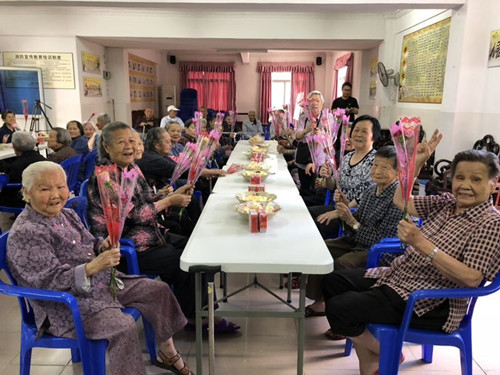 随着简单的切蛋糕仪式,茶会就此拉开了序幕。敬老院的老“帅哥”为现场的妈妈们送上康乃馨,并逐一祝福她们,妈妈们收到鲜花,都笑开了花,脸上洋溢着开心与满足。有位老妈妈手拿着鲜花,开心地道:“为人妈妈已经50多年了,第一次收到康乃馨,第一次知道康乃馨是象徵母亲的花,还能跟这么多年龄相仿的姐妹们相聚一起,一起吃蛋糕、一起玩,很开心!”