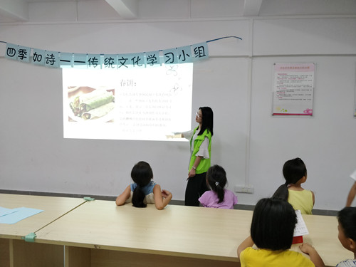 随着时代的发展,社会大众对中国传统文化的热爱程度逐渐淡薄。电脑、手机等通讯工具的普及,不仅是大人人手一台,社区儿童也开始沉迷于网络聊天和网络游戏,而对传统文化的学习的接触愈来愈少。为此,乐雅社工驻金美社区综合服务中心于 5月19日、26日、6月2日、6月9日开展四季如诗——传统文化学习小组,小组参与人数为15名儿童。