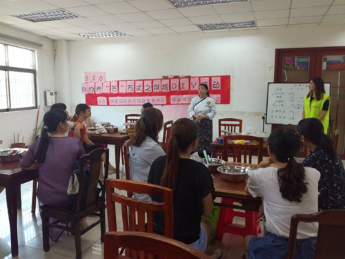 成功报名的社区妇女都积极前来参加活动,在制作前,妇女们专心听老师认真讲流程和注意事项;在制作中,经过老师前期一步一步演示后,妇女们都兴致盎然,大家怀着愉悦的心情开始按照老师教的步骤小心翼翼一步一步得认真做,活动的过程简单却耗时长,在小组之间相互交流、相互帮助最后做出一个美味的芒果千层饼。
