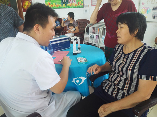 活动中,东莞光明眼科医院的医生用专业仪器设备为每位参加检查的老人进行视力测试、白内障检测,对查出患有白内障眼疾的老年人进行登记,并仔细讲解了白内障的防治措施,并对白内障严重的患者给出了建议。眼科医生还为老人普及了白内障预防、保健知识,提高了三联社区老人的眼保健水平。