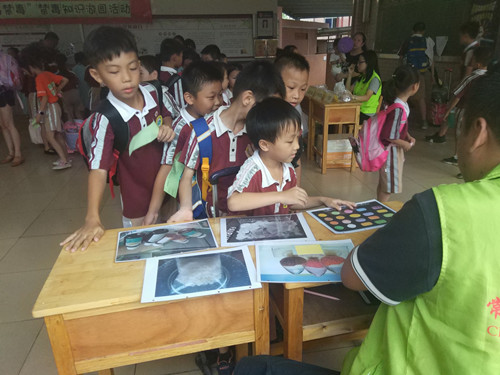 下课铃一响,小朋友们都迫不及待参加禁毒知识游园会。游园会通过观看仿真毒品、毒品危害知多少、毒品连连看、打地鼠等生动形象的互动游戏提高对毒品的认知。活动还有新型毒品照片以及包装展示,小朋友惊讶的发现毒品包装和他们平时吃的零食一模一样!并表示陌生人给我东西绝对不会吃。