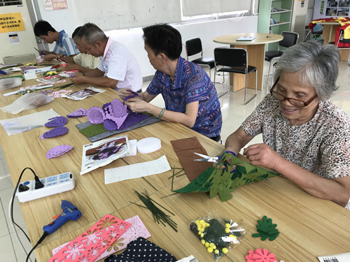 为丰富社区老友记的精神生活,北隅社区综合服务中心开展“心灵手巧,快乐相伴”老友记不织布手工花小组, 通过做一些简单手工花,为老友记搭建一个展现自我风采,提升自我价值的平台,同时认识更多的新朋友,增强社会支持网络。