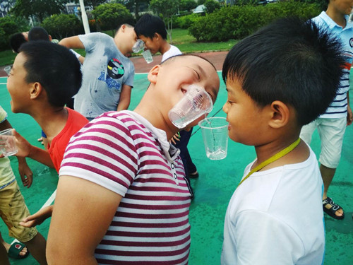 本次活动设置设计了水上吹吹吹、纸杯传水、猜拳水球、扔水球、比比谁快等活动游戏。互动会开展得非常顺利,每位小朋友玩得非常开心。“玩”是孩子的天性,儿童趣味互动会更丰富了小朋友的娱乐生活,使小朋友在“玩”中锻炼了身体,增强了自信心,学会了合作,找到了快乐。在这个过程中,学生们相互配合,传着一杯杯水,掌声、笑声、喝彩声此起彼伏。到活动的最后是众人泼水环节,你来泼水我来挡水,学生们玩嗨起来,一片欢乐的气氛。