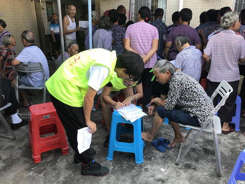 为了让更多的长者参与健康体检,工作人员在体检活动开始前一周,通过电话、发放体检宣传资料等多种渠道进行通知。免费体检的项目包括:血压、身高、体重、视力、B超、心电图、血常规等,体检的同时,医护人员耐心了解老年人的生活习惯、慢性疾病常见症状和既往所患疾病、治疗以及目前用药情况,为老年人建立个人健康档案,对老年人的生活方式和身体状况进行评估以及跟进。