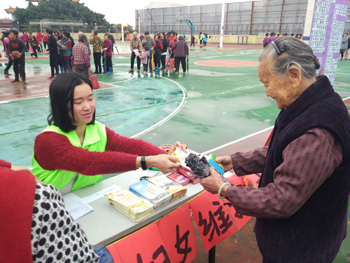 活动现场设有“维权知识知多点”、“欢乐投篮区”和“健康检查区”三个区域。维权知识普及主要以女性健康和女性权益保护为主;此外,社工设置了有奖问答和问题答疑环节,针对妇女群体提出的相关疑问进行一对一解答。在“欢乐投篮”环节中,年龄高达75岁的婆婆开心地拿起篮球,努力往篮框里送,失败了也不灰心再接再厉,终于投中了一个,便开心得跳了起来!她对社工说:“我七十多岁了,今天是第一次摸到篮球,第一次投中了篮球,真是开心!”投篮活动虽然简单,但是快乐在传递着、感染着每一位妇女同胞。在“健康检查区”,家庭医生耐心地为妇女们进行健康检查,嘘寒问暖,切实地为妇女群众送去了健康关怀。