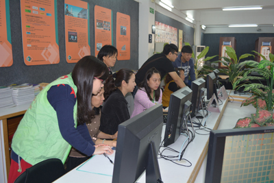 电脑培训活动正式开始,现场气氛热烈,学员们学劲十足,在电子阅览区认真地听工作人员进行讲解教学,对于不懂的疑问及时举手提出,边操作边请教。在工作人员的耐心指导和志愿者们的从旁协助下,一个多小时下来,众位学员已经基本学会了如何利用网络下载视频,观看视频。学员们纷纷感叹原来网络可以如此便捷!