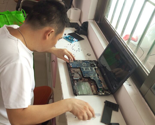 义修师傅提前来到活动地点开始义修活动, 附近的、偏远地方的居民,在活动时间里将家里需要维修的电器带到中心给师傅检查。