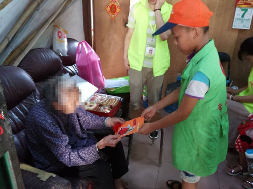 活动过程中社工和志愿者分了两个小队伍进行入户慰问,在探访过程中与长者们亲切交谈、问候,详细询问长者的健康状况、生活上的困难、需求,和子女的情况等,了解他们的精神状态,并借以母亲节向长者们送上了孩子亲手自制的小蛋糕,送上慰问品的同时志愿者并将“爱心慰问卡”送到老人手中,并献上我们的真挚祝福。长者们都表示非常的开心,慰问中有位婆婆说道:你们有心了,感谢你们对我的关心,还送上了自制的蛋糕,我会慢慢的把蛋糕吃完的,婆婆最后还祝福以后大家都要过的健健康康平平安安!最后两个小队伍会合来到了司马村老人活动中心慰问在娱乐中的长者们,志愿者把小蛋糕送到了他们的手中,活动中的长者表示使他们充分感受到了社区中心对我们的关心和爱护。