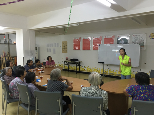 社工通过视频展示向老人们介绍了近年来在广东发生过的一些天灾,并向老人们说明了天灾带来的危害和损失,一个个血淋淋的事件令人触目惊心。在活动现场,社工还结合东莞地区的实际情况,详细讲解了遇上下冰雹、暴雨浸水、雷电、地震、台风和火灾的应急措施,同时也向老人们传递了防蚊虫的知识,去年水南发现了多例的登革热病,为了老人们的健康着想,社工细心地开始提前做好预防宣传。