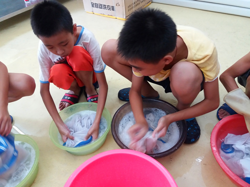 水南社区第二届夏令营针对六年级小朋友开设了“小升初——住宿生活我不怕”小组。小组中,组员们通过理论知识与实践相结合的方式学会了洗衣服、叠被子和晾蚊帐的技巧,增强了生活技能,可以更好的适应住宿生活,在面对即将来临的住宿生活时可以自信的说:我能行!