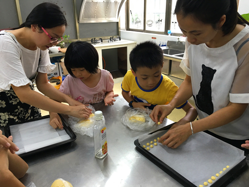 小组以烘培为主题,培养孩子的生活情趣,提高他们的实践动手能力,同时让孩子在与家长的互动过程中能够体验到生活的乐趣。第一节大家一起制作了小巧可爱的MM’s曲奇小饼,组员们既新奇又彷徨;第二节制作的是炼乳脆饼,在第一节小组的基础上,组员们的制作小有所成,从一开始的彷徨变得开始自信起来啦;第三节制作的是蔓越莓麻糬包,组员们亲眼见证了一坨坨的面粉烤成小包的过程,组员们信心大增;第四节制作的是小馒头,尽管搓面团搓了很久,但是看着烤出来一颗颗香喷喷的小馒头,满满的成就感涌上心头。