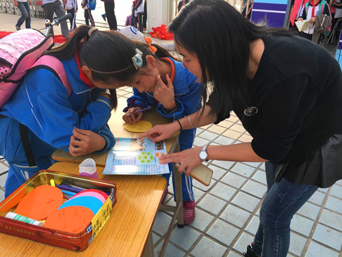 本次宣传活动共设有4个摊位,分别是咨询台、烦恼回收站、小义工服务站、校庆留言墙,活动结合学生的需求,让师生、家长在参加学校校庆活动的同时了解到社工的服务。放学时分,同学们在排队给校庆留言墙写祝福的时候,社工会利用这个时间给同学介绍社工的服务,而且有些同学在了解社工服务后主动把自已学习生活中遇到烦恼、困难写下来,放进“烦恼回收站”箱,希望与社工一起探讨如何解决问题。在小义工服务站,很多学生以及家长非常有爱心,向社工咨询“我们能不能加入小义工队伍”、“我们想去看望老人”、“我们想去帮助别人”……社工对学生以及家长的爱心表示肯定,让学生和家长填好义工服务信息表,欢迎他们加入学校的义工服务队伍。晚会开始前,家长们陆续进入校园,当他们在校庆留言墙驻足时,社工及时地向他们介绍社工在校开展的服务,家长们翻看了社工发给他们的宣传册后,表示对社工的服务很感兴趣。