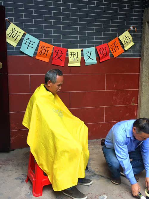 1月6日,为迎接新年到来,乐雅驻清溪社工联系义剪志愿者,在清厦祠堂为老人开展“新年新发型”免费剪发活动。