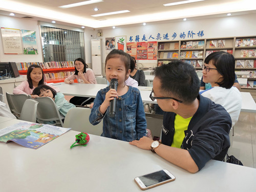 本次活动由“快乐接力棒”开始,家长和孩子在欢乐的气氛中向大家介绍自己,相互认识,现场气氛欢乐而又活跃。在“分享我最爱的书籍”环节中,大家纷纷分享出自己最爱的一本书,雨婷小朋友分享了“守株待兔”的故事,告诫大家要努力勤奋,不能好逸恶劳,否则会一无所获并被人耻笑。泉秀小朋友则是跟大家分享了《爱的教育》中的一则故事,她从中收获的是人人都是平等的,不能够因为一个人的地位、财富等就可以歧视别人。此外,社工引导参加者进行趣味知识竞赛,将活动推向了高潮,家长和小朋友争相竞答并从中获益。