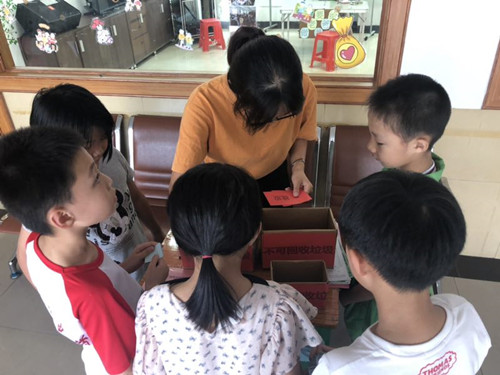 本次活动设有五个摊位,其中三个亲子互动游戏,一个知识问答和一个亲子手工。活动开展前,亲子家庭都按时参与活动,亲子互动游戏有亲子套圈圈、亲子背对背行走指压板、掌上明珠,家长与孩子玩的不亦乐乎,其中在掌上明珠游戏中,家长在终点鼓励孩子们稳步行走,孩子们在爸爸妈妈的鼓励下,通过难关,非常的开心。在知识问答中,主要是让亲子学会垃圾分类,环保生活,保护我们的社区环境。在亲子手工“我要给爸爸做礼物”环节中,孩子们都非常用心的用轻黏土做出图案并写上想对爸爸说的话的贺卡送给父亲。